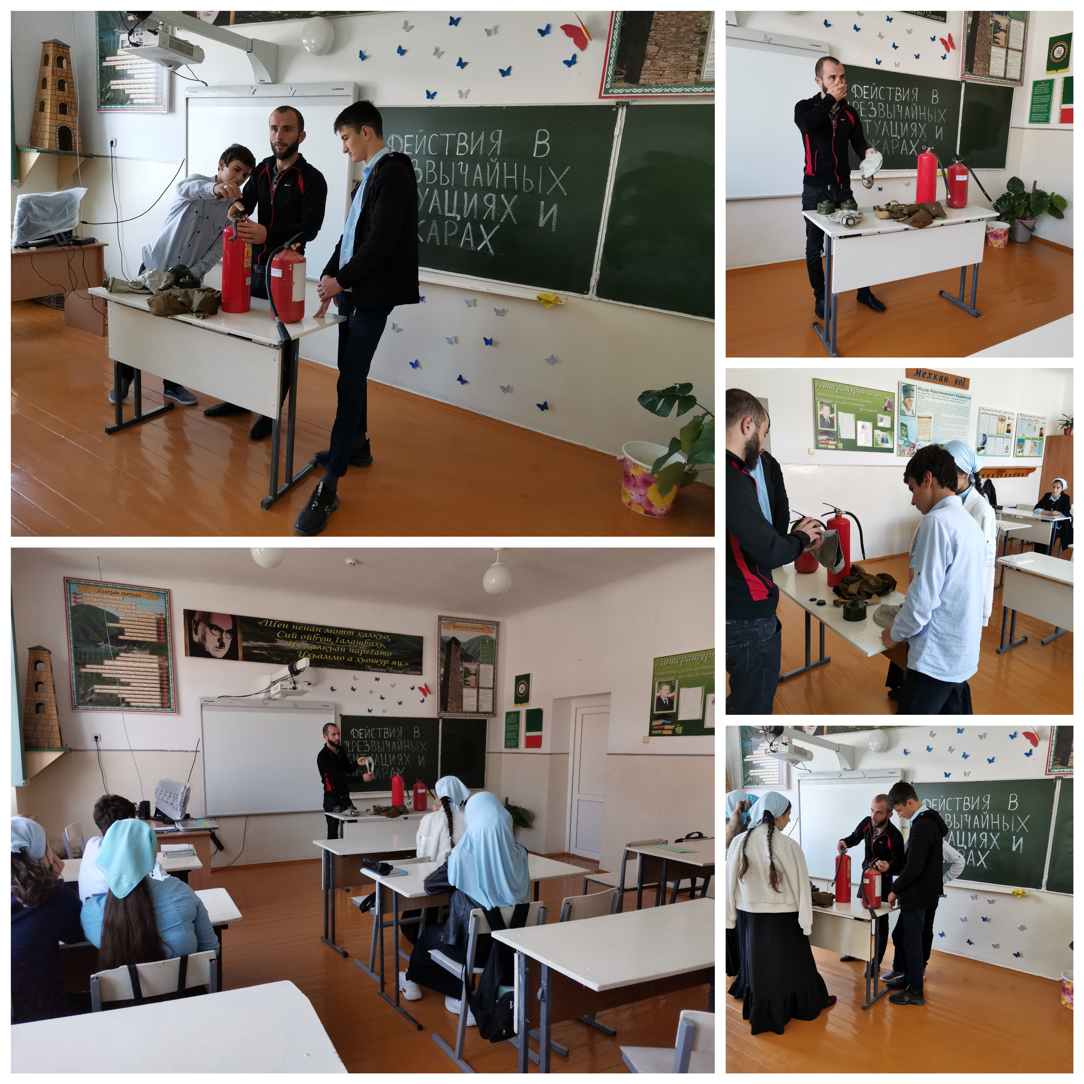 Учитель ОБЖ Казбеков М.С. провёл с учащимися 8-9 классов МБОУ 'ООШ п. Чири- Юрт' тренировочное занятие по действиям в условиях чрезвычайных ситуаций и пожаров
