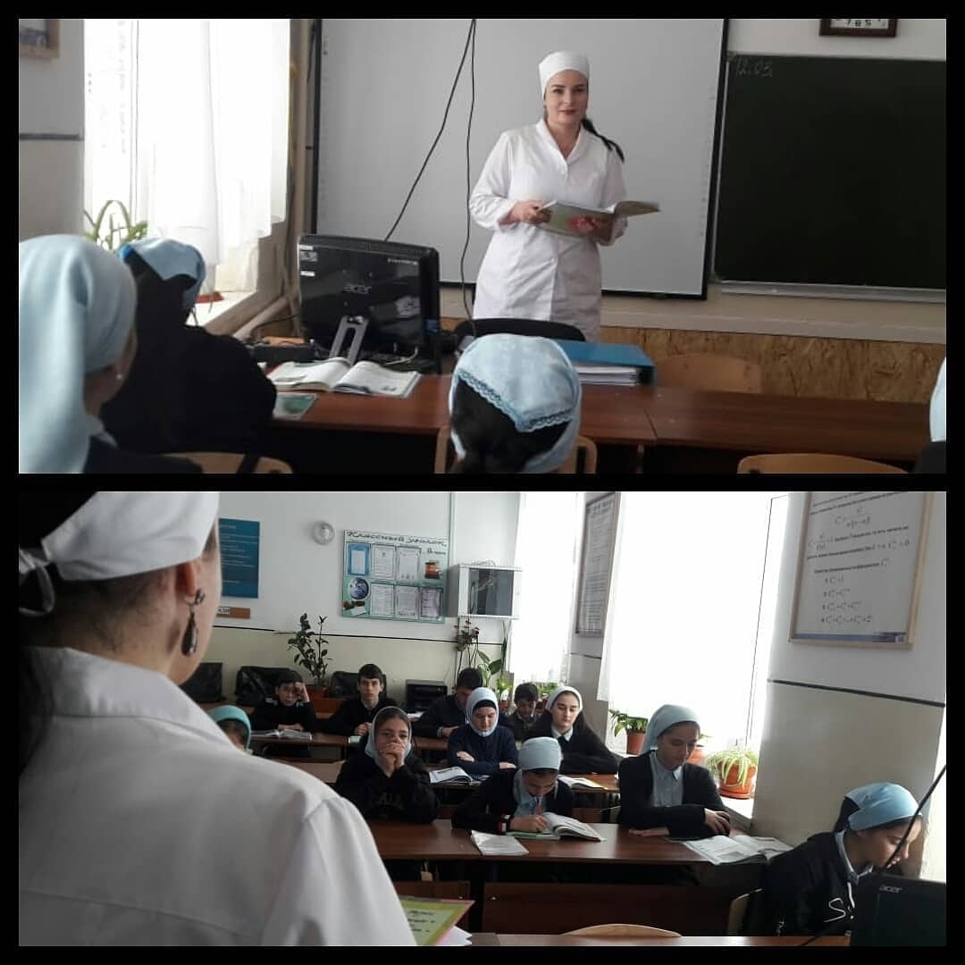 Медработник нашей школы Давлетбиева Е.В.провела беседу"Здоровый образ жизни"с учащимися 9кл.