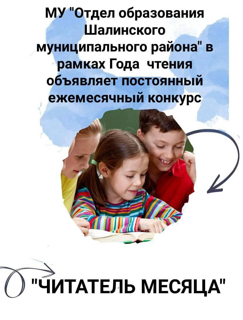 06.10.2022в рамках Года чтения объявляет постоянный ежемесячный конкурс "Читатель месяца" среди обучающихся общеобразовательных организаций района. Итоги конкурса будут подводиться ежемесячно, согласно Положению. Победителям конкурса будет добавлен балл к итоговой четвертной оценке по литературе, а также будут вручены призы.