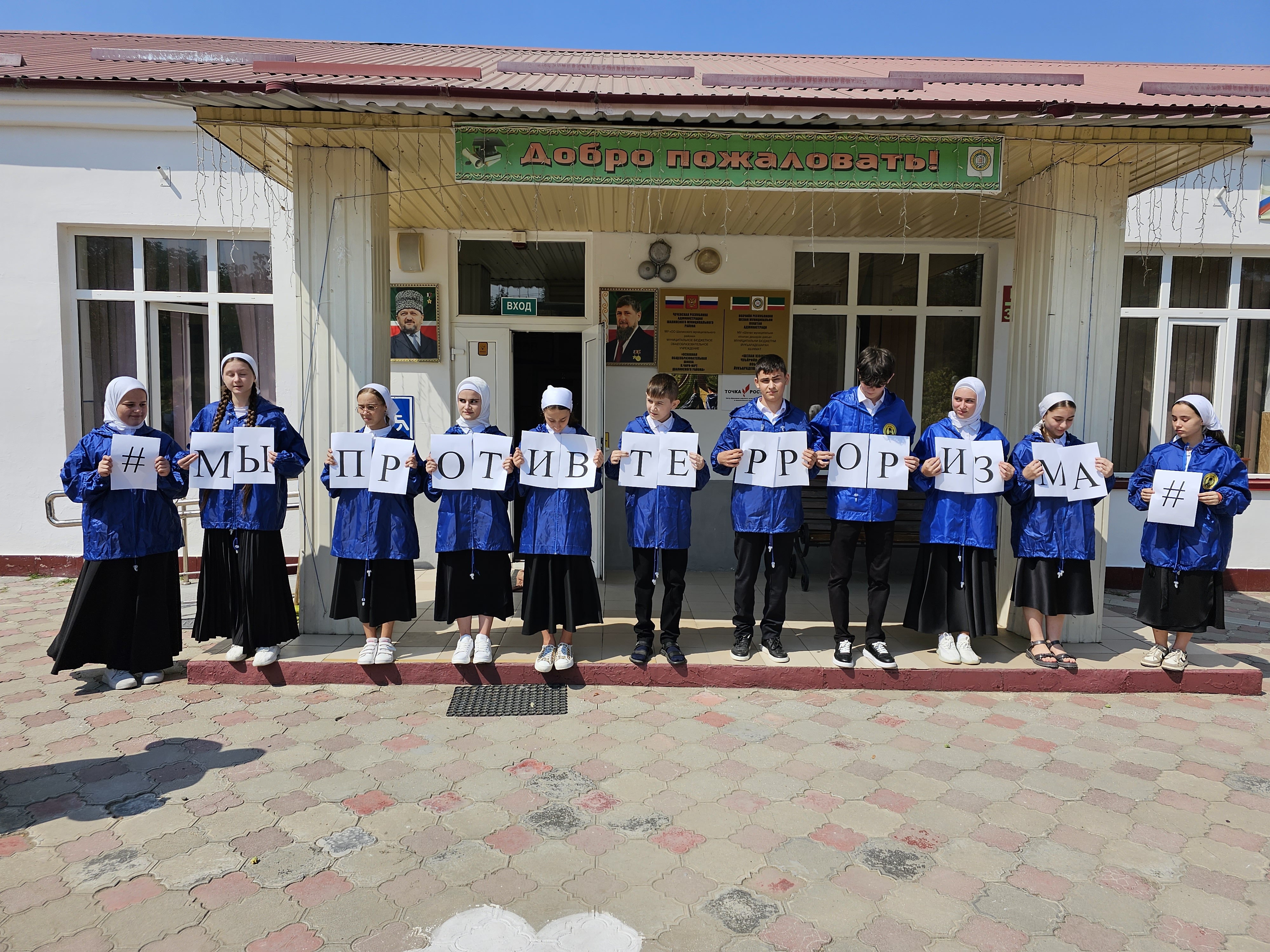 02.09.23г. в МБОУ"ООШп.Чири-Юрт " активисты ЧРОО ЕДЮО "Юные Кадыровцы " провели акцию, приуроченную к Дню солидарности в борьбе с терроризмом. #МЫПРОТИВТЕРРОРИЗМА#