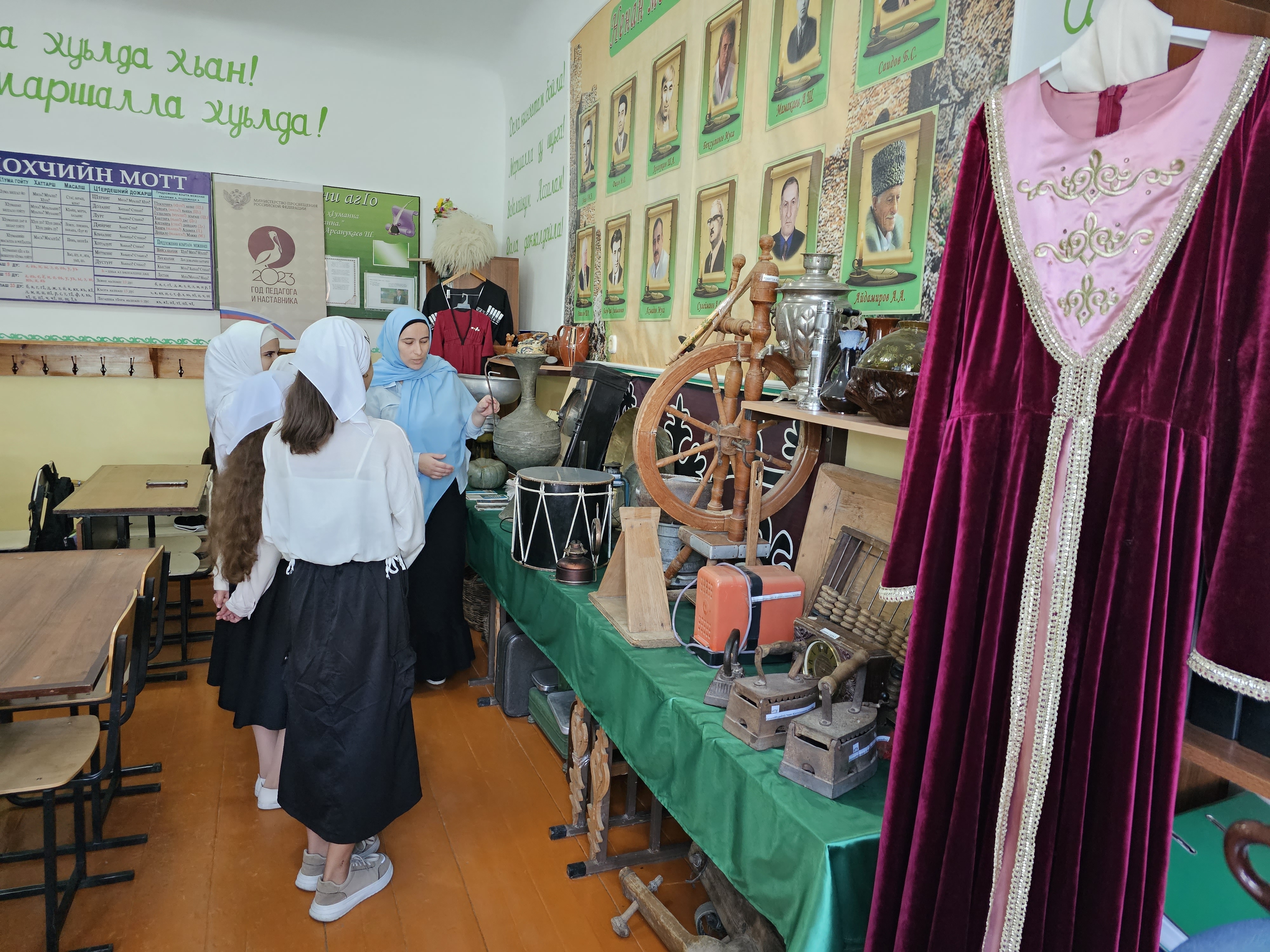 29 сентября 2023 года в МБОУ "ООШ п.Чири-Юрт" состоялась выставка этнографических музейных экспонатов прикладного искусства и быта чеченцев 19-20 веков под названием "История чеченцев". Вещи, представленные на этой выставке, показывали быт, религию, традиции, касающиеся воспитания детей.