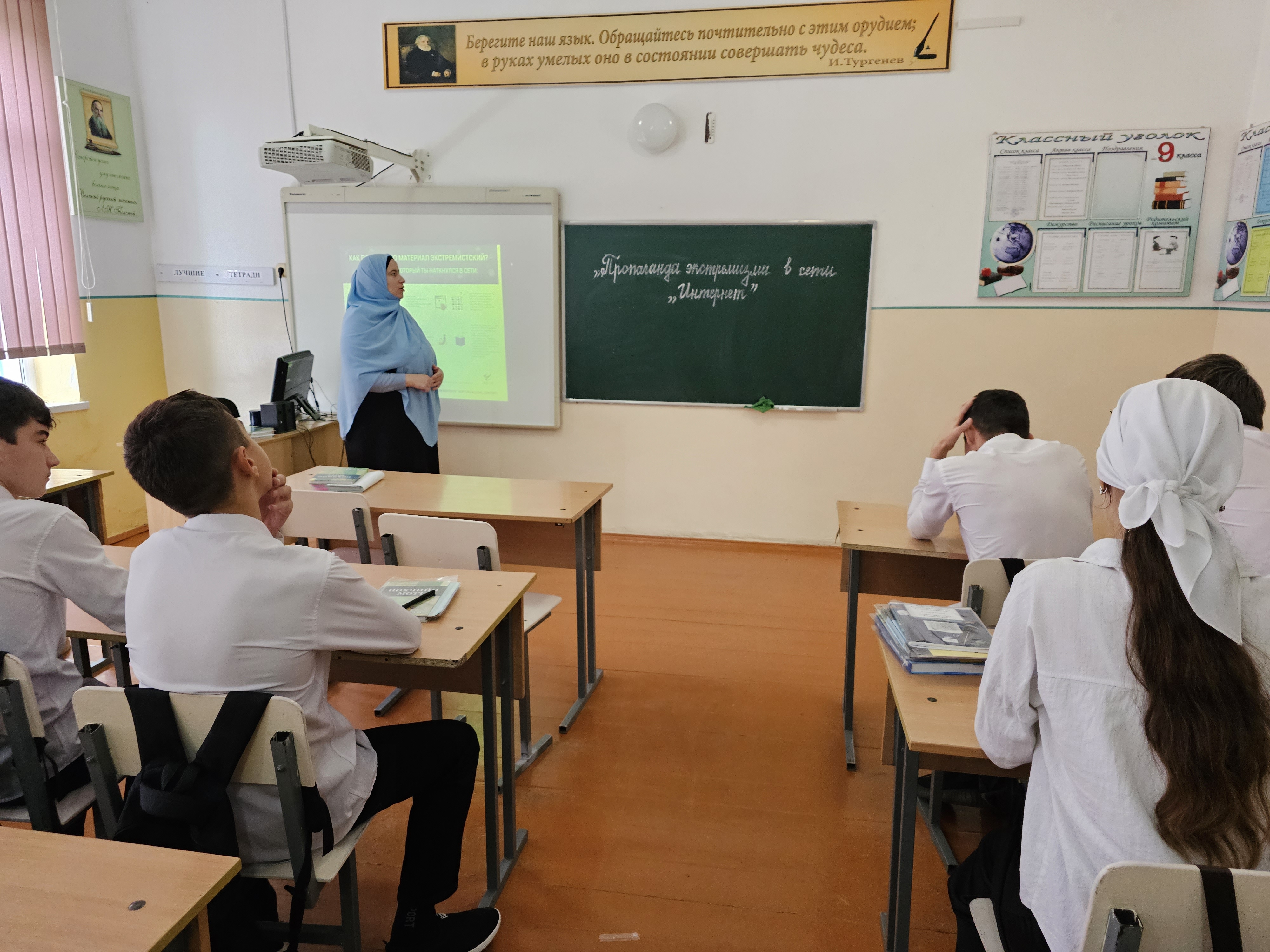 Отделом в Шалинском районе УФСБ России по Чеченской Республике совместно с МУ «Отдел образования Шалинского муниципального района Чеченской Республики» проведено профилактическое мероприятие в МБОУ "ООШ п.Чири-Юрт" на тему: «Пропаганда экстремизма в сети «Интернет».