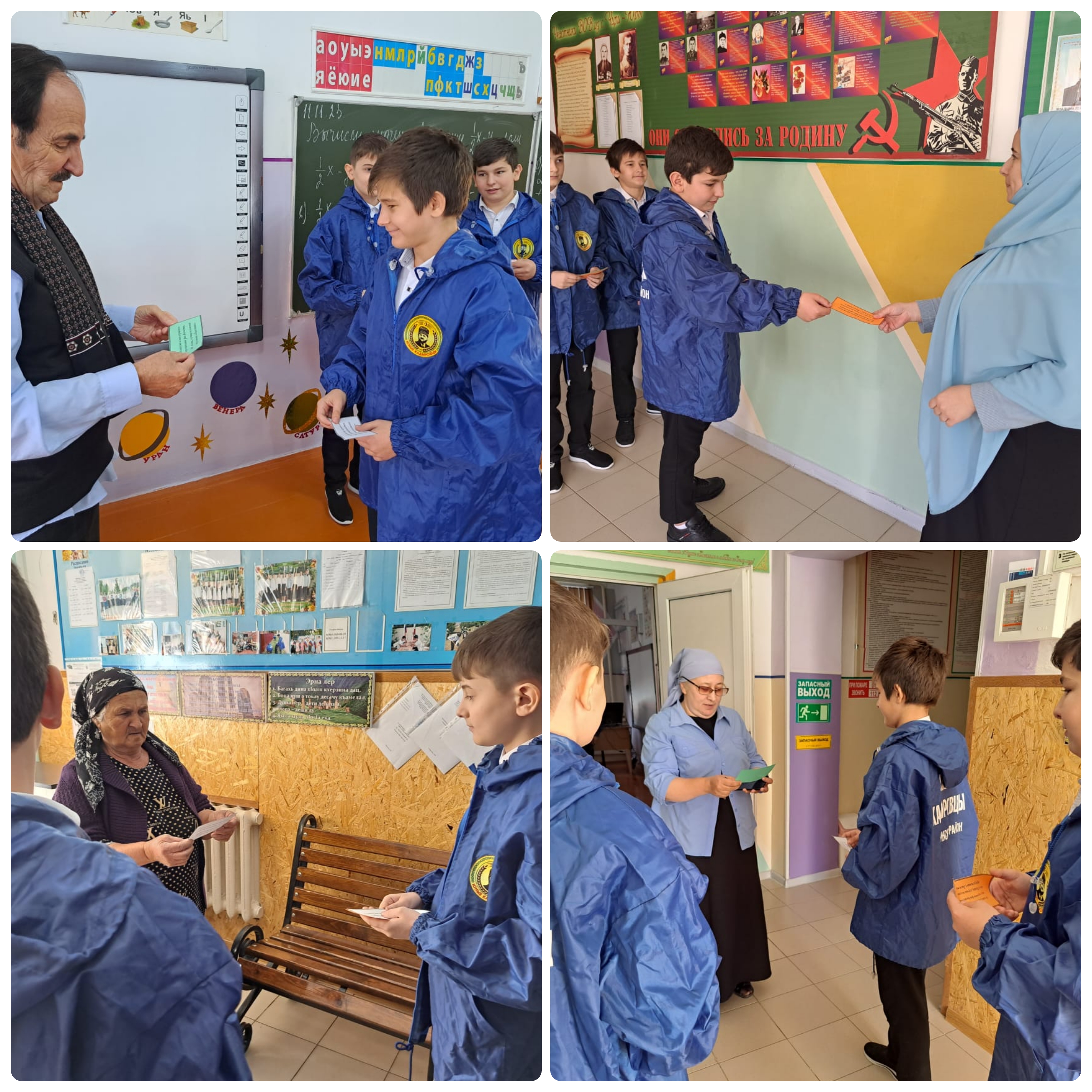 17.11.2023г. в МБОУ"ООШп. Чири-Юрт Шалинского муниципального района " активисты ЧРОО"Юные Кадыровцы " провели акцию "Поможем Палестине". Активисты раздали буклеты , в которых просят сделать дуа за мусульман в Палестине.