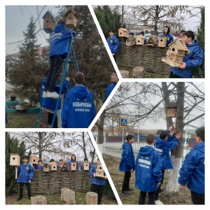 Ребята развесили скворечники и кормушки на территории школьного двора и наполнили их птичьим лакомством-семечками и пшеном.
