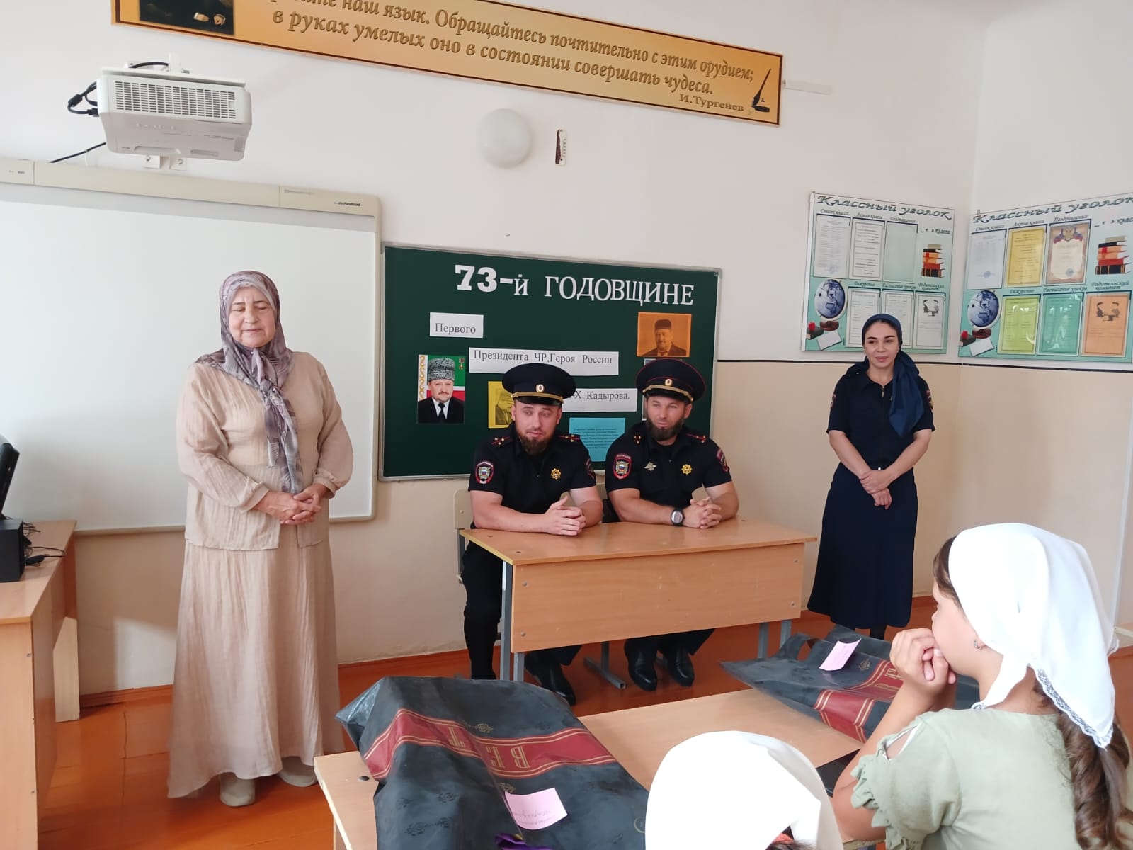 24.08.2024г. в МБОУ"ООШс.Чири-Юрт Шалинского муниципального района " состоялась акция, посвящённая 73-й годовщине Первого Президента ЧР, Героя России А-Х.Кадырова, по оказанию материальной помощи детям из малоимущих и многодетных семей. Детям была вручена школьная форма и школьные принадлежности. В акции приняли участие: инспектор ПДН ГУУП и ПДН ОМВД России по Шалинскому району ЧР старший лейтенант полиции Р.Х.Мержоева, инспектор ОПДН ОМВД России по Шалинскому району лейтенант полиции С.А.Батаев, старший инспектор ОПДН ОМВД России по Шалинскому району лейтенант полиции А.И.Барзаев.