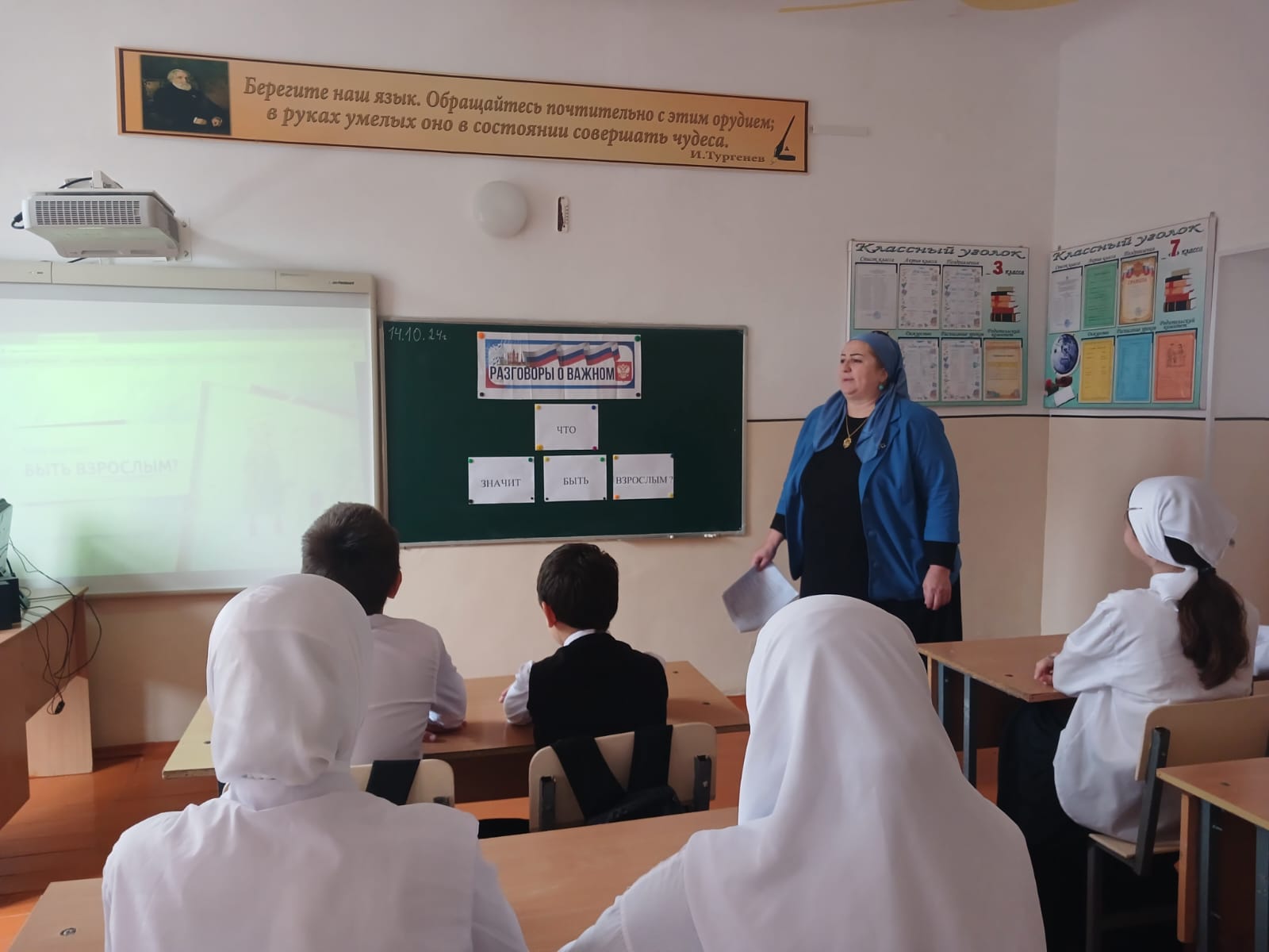 Первое занятие недели «Разговоры о важном», сегодня, 14 октября 2024 года, в МБОУ «ООШ с. Чири-Юрт Шалинского муниципального района» было посвящено теме «Что значит быть взрослым?».