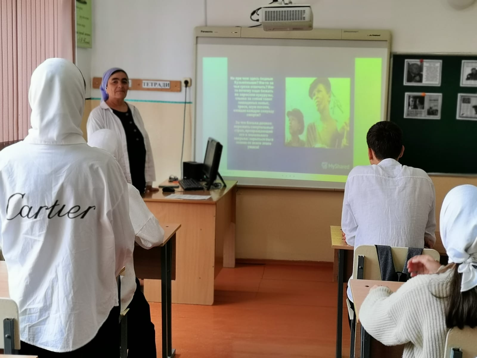 Библиотекарь школы Дакаева Петимат Закараевна при помощи слайд презентации рассказала учащимся о жизни и творчестве Анатолия Игнатьевича, а затем школьники познакомились с содержанием повести Анатолия Приставкина «Ночевала тучка золотая». Эта книга рассказала о том, что довелось пережить самому автору в детстве, о том, что обожгло его сердце. Эта повесть о беспризорных детях войны и искорёженных войной детских судьбах, о правде, о детской боли.