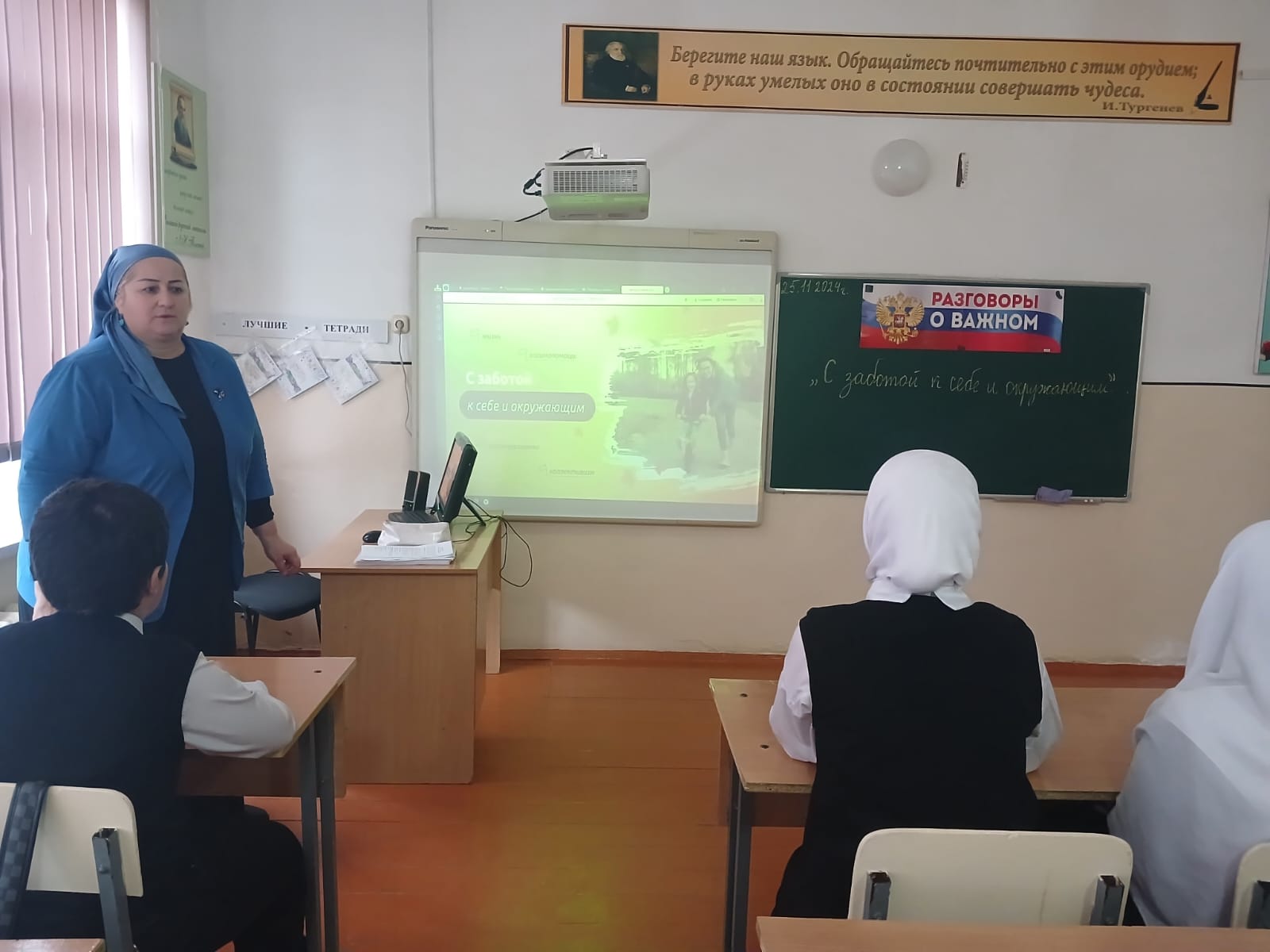 Сегодня, 25 ноября 2024 года, в МБОУ «ООШ с. Чири-Юрт Шалинского муниципального района состоялось очередное внеурочное занятие «Разговоры о важном» по теме «С заботой к себе и окружающим».