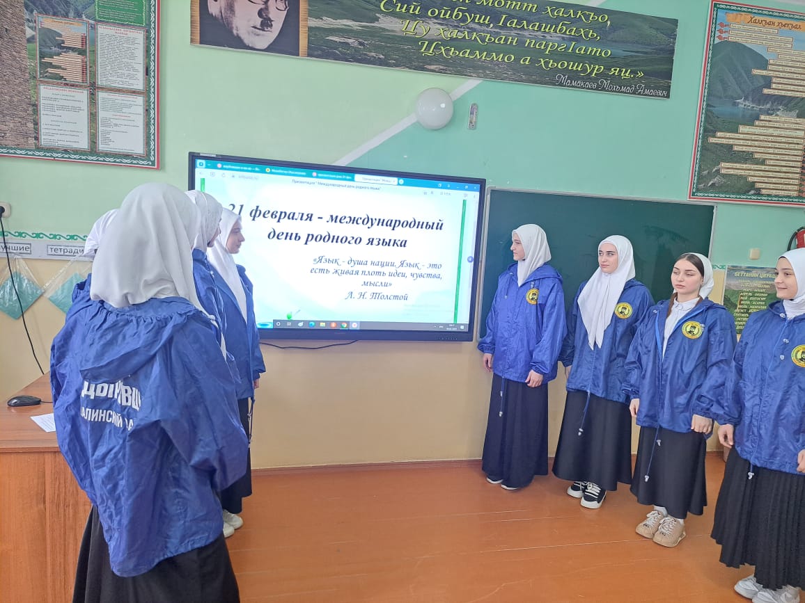В МБОУ " ООШс.Чири-Юрт Шалинского муниципального района " активисты ЧРОО"Юные Кадыровцы " провели мероприятия, посвящённые Международному дню родного языка.