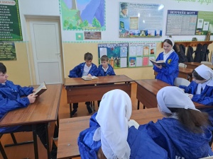 18.02.2025г. в МБОУ"ООШс.Чири-Юрт Шалинского муниципального " активисты ЧРОО"Юные Кадыровцы" провели литературный вечер, посвящённый чеченским писателям.