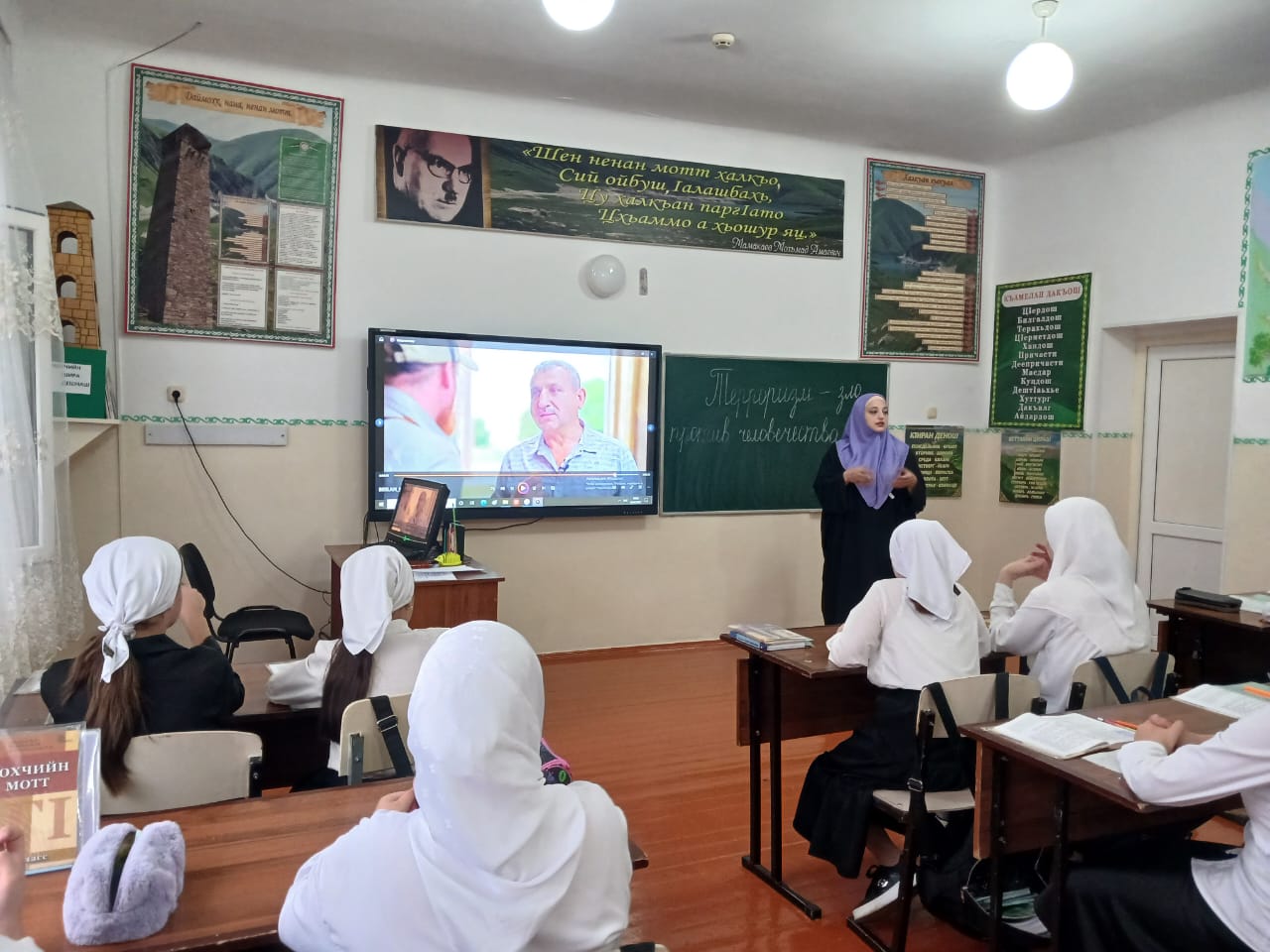 08.09.2025 г. Классный руководитель 5-го класса МБОУ "ООШ с. Чири-Юрт" Ханалиева З.С. провела классный час, посвящённый трагическим событиям 1 сентября 2004 г. в г. Беслане. В тот трагический день террористами было захвачено здание общеобразовательной школы № 1 г. Беслана. В результате этой трагедии погибло 334 человека: 17 учителей, 186 детей, 11 бойцов спецназа. Ханалиева З.С. отметила: "Это страшная страница в истории, и мы надеемся, что подобное никогда и нигде не повторится".