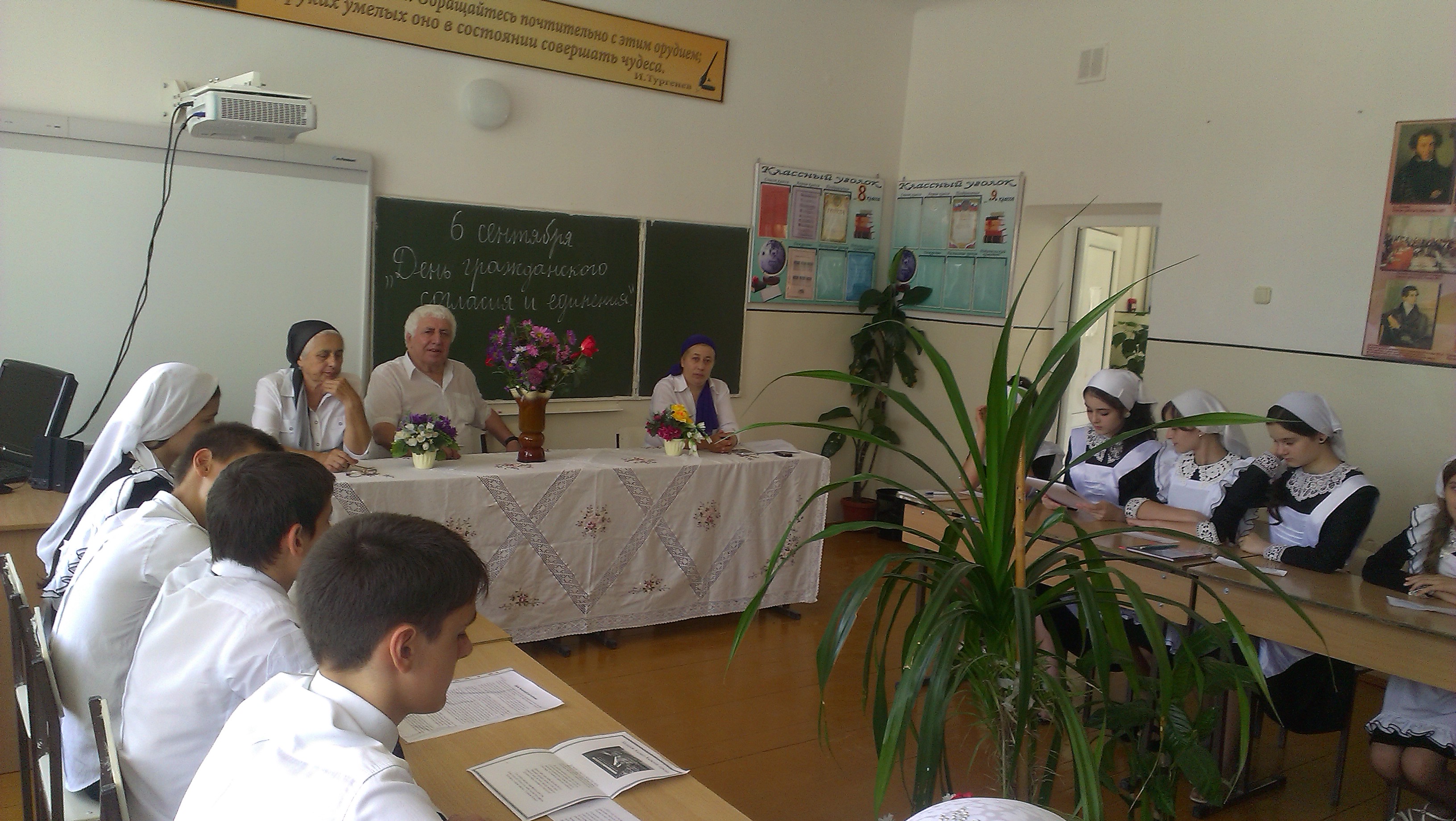16.09.2015В МБОУ «ООШ п.Чири-Юрт Шалинского муниципального района» учителем обществознания Исраиловой З.М., был проведён круглый стол с учащимися 8- 9классов, посвящённый «Дню гражданского согласия и единения».