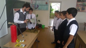 Учитель ОБЖ Казбеков Магомед Сайпудинович продемонстрировал учащимся, как нужно применять средства РХБ защиты, а также ознакомил с инструкцией по обращению с предметами противопожарной безопасности. Учащихся научили воспользоваться средствами оповещения персонала о чрезвычайных ситуациях и вызова аварийных служб.В рамках программы месячника было проведено учение по эвакуации из школы при возникновении чрезвычайных ситуаций.За проведением открытого урока наблюдали руководитель ОУ Юсупова Сарет Ризвановна и заместитель директора по ВР Исраилова Зарема Магомедовна.