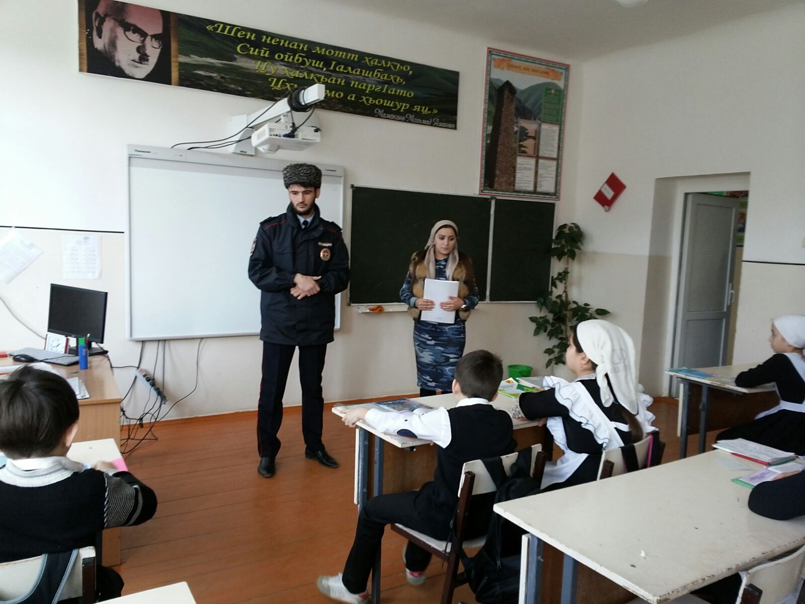 15.02.2016В МБОУ «ООШ п.Чири-Юрт Шалинского муниципального района» побывали инспектор ПДН З.С-М. Лорсанова и участковый села Юсупов Х.Р. Они проверяли наличие у учащихся телефонов, внешний вид и посещаемость. Также проведена беседа по духовно - нравственному воспитанию учащихся
