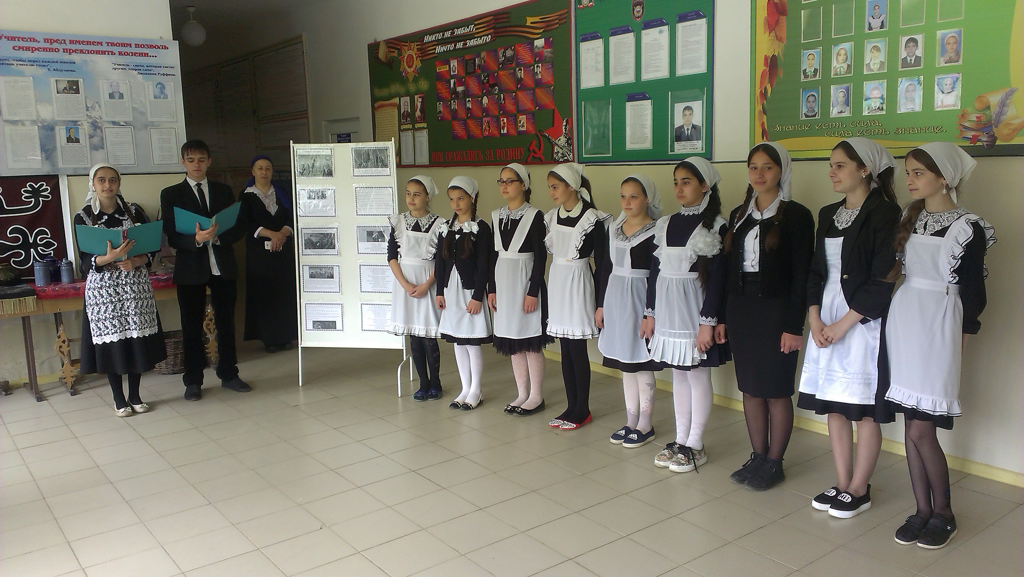 На мероприятие были приглашены учащиеся 5-9 классов. День мира - новый праздник в календаре событий новейшей истории Чеченской Республики. Этот день олицетворяет собой победу над международным терроризмом и экстремизмом. Мероприятие прошло по четко составленному сценарию, авторами которого была заместитель директора по ВР Исраилова З.М. Ведущий проекта Царнаев М.С. провел экскурс в историю возникновения Дня мира. В сценарий торжественного мероприятия входили песни, стихи, видеоролик, презентация. Отрадно отметить, что кульминацией праздника стало хоровое исполнение песни «Къонахчун илли».
